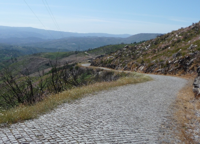 Every time an emperor died the milestone with his inscription had to be replaced, but they left the old ones behind. The road followed the edge of a reservoir above a gigantic dam (not there in Roman times) and then the road crawled higher and higher through tiny cobbled crumbly villages and over the top eventually bringing us back to our “home village” of Entre-Ambos-os-Rios.