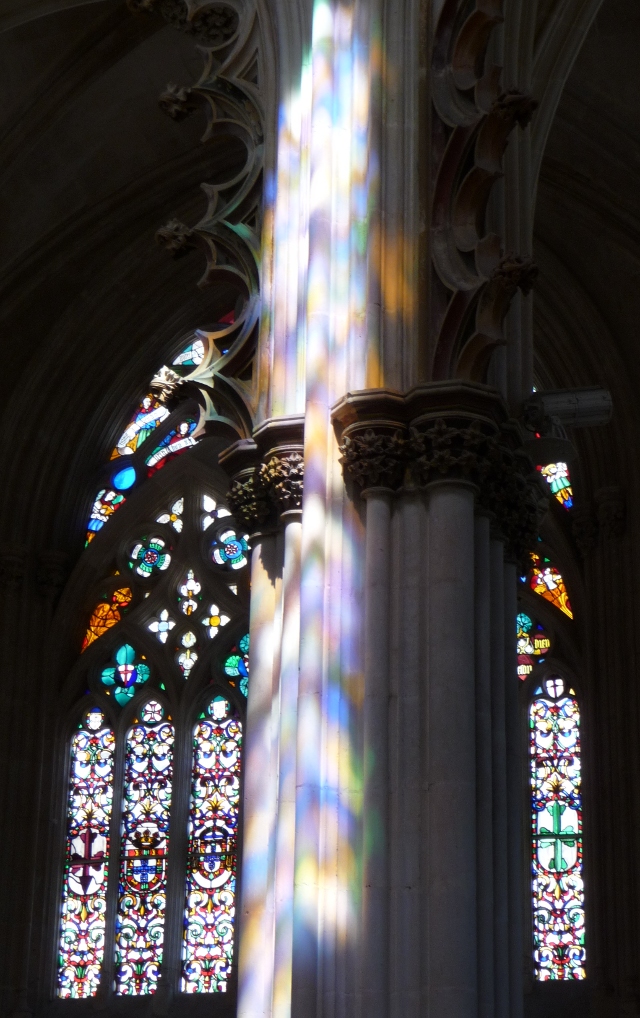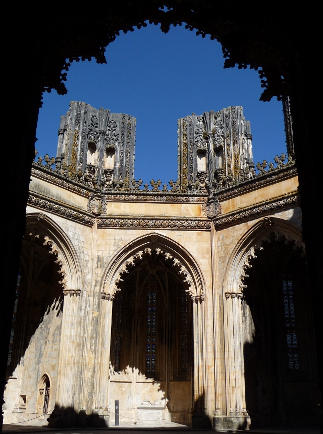 After Fatima (which really deserves a post all to itself), our final stop before Lisbon was Batalha’s abbey. Whilst the whole building was utterly beautiful, with fantastic light through the stained glass, it slightly suffered from ennui and “cultural overload” starting to set in – although that was thoroughly ignored when we reached the the “unfinished chapel”. Built on one end of the main abbey, as a mausuleum, the octagonal structure was under construction for almost 100 years until work stopped in the mid 16th century, as the buttresses to support the second storey of arches were starting to soar skywards. The abbey also contains Portugal’s main tomb of the unknown warrior, under a roof with an unsupported dome on a scale unprecedented at the time of building. The authorities were so wary and so certain that it would collapse, that condemned criminals were brought in as construction labourers – and the architect lived under it on completion to demonstrate his confidence in his design.