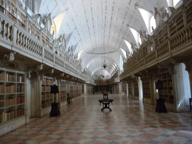 The construction very nearly bankrupted the country, at a time when gold was rolling in hand-over-fist from the New World. When the Flemish bellmakers queried the size of the order, and asked for payment in advance, the king retorted with a huff that if that was their attitude, he might as well put a second bell tower on, so he’d need twice as many bells – and whilst he was about it, he’d happily pay twice as much for them… We started our visit soon after the palace opened in the morning, and – given that there was a party of about a dozen ahead of us, including umpteen small children, we ignored the posted route and leapt out of sequence – which meant that we could enjoy deserted views down the full length of the corridors linking all the staterooms. It’s difficult to describe just how ridiculously large this place is – but much of the support infrastructure is doubled up, with one set for the King’s private use and one for the Queen’s. Not just private chambers (the towers on opposite front corners, a good 200m apart – although we couldn’t see hers, closed for restoration), but chapels and even kitchens. The one thing they seem to have shared is the library. Not really a great hardship, since it’s about 100m long…