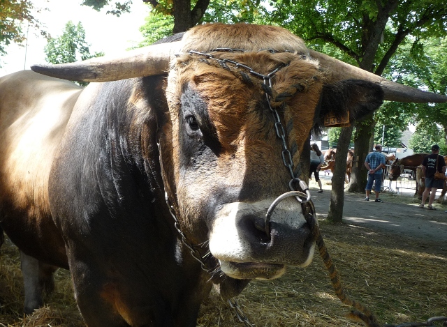 Next stop St Flour, a town perched atop an oblong hill, which was full of life with the local country show right in the middle of town. Being still quite early in the day, we managed to park up right next to the show and strolled in beside prized animals. Newly washed, brushed and polished – huge bulls, chunky heavy horses and their foals, goats, sheep, tiny ponies with tiny children on them, all gloriously chaotic … and the wet ground underfoot soon dried up as the sun came out and blazed on the day.