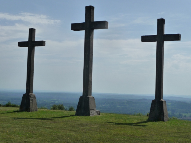We’ve visited the busy Sunday market in Égletons and eaten giant buttery croissants from the local boulangerie, and had a stroll around the nearby small town of Correze itself – with its pretty church and 16th century houses clustered above the Correze river. Above Sarran sits the hill – Puy de Sarran – with its calvary of three crosses. As it was so hot we cheated and drove most of the way to the top. The views were splendid in all directions.