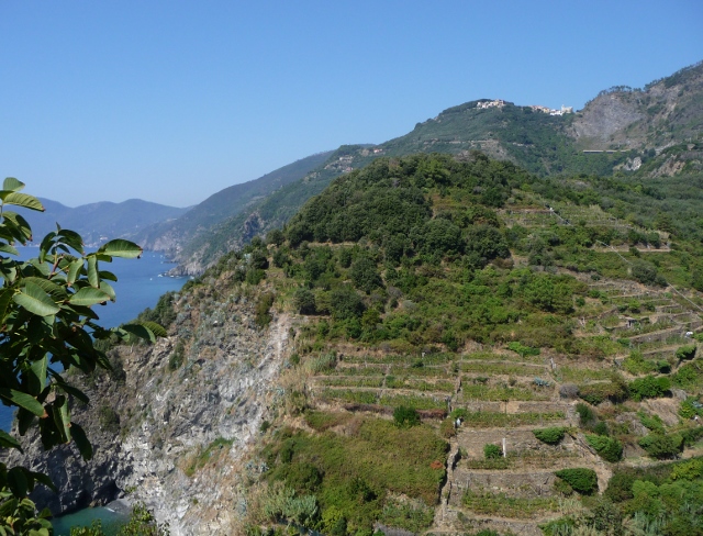 From Corniglia the path wound out of the village through passageways and into olive groves, up and down hill around several headlands on uneven steps and stones. There was a lot of uphill and a lot of downhill too and it was heavy going at times.