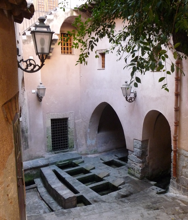 The cathedral, opening onto an airy piazza, is home to another set of gorgeous golden mosaics – slightly earlier than those at Monreale and Palermo’s palace chapel, and confined to just the altar end rather than filling the entire building – but no less beautiful for that. On one of the roads, there’s the medieval baths, a series of sunken basins with rapidly flowing water through carved stone lion’s head spouts.
