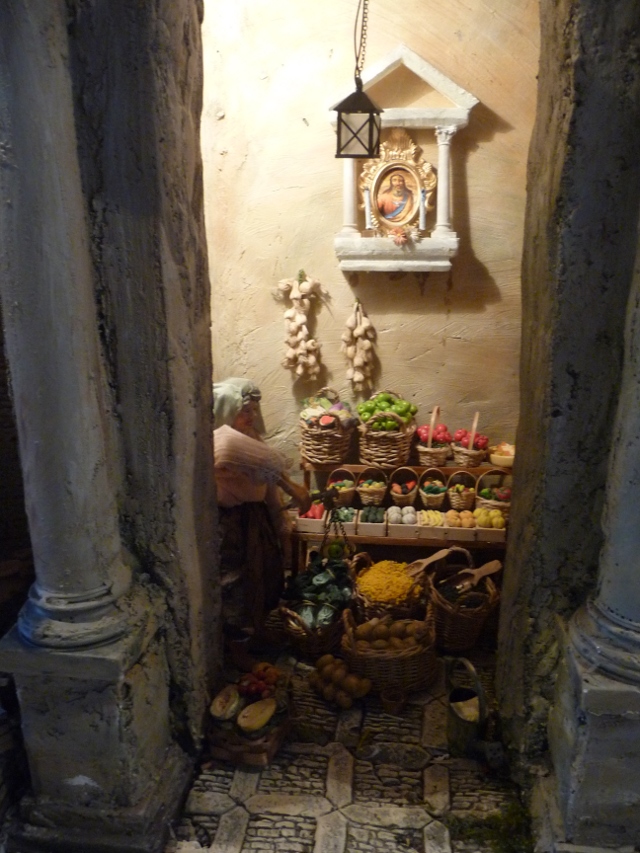 Entertainment was provided by another Christmas market, with small huts in a couple of the town squares, and a wonderful series of animatronic tableaus – both nativity and local-life-in-times-past – in a small courtyard.