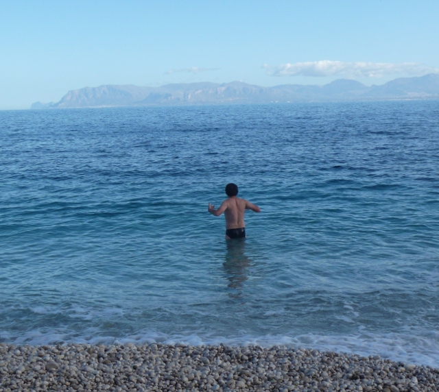The run-up to New Year saw a whole load of Italian registered campers appear, and we thought the site might see some lively celebrations. But they nearly all disappeared again on the morning of New Year’s Eve, for some strange reason. The year started with bright blue skies, so we decided to give a try to the walking poles we’d treated ourselves to, with another meander through the Zingaro natural reserve. Not just a meander, either – I even braved the sea for a New Year’s swim! Yes, it was cold…