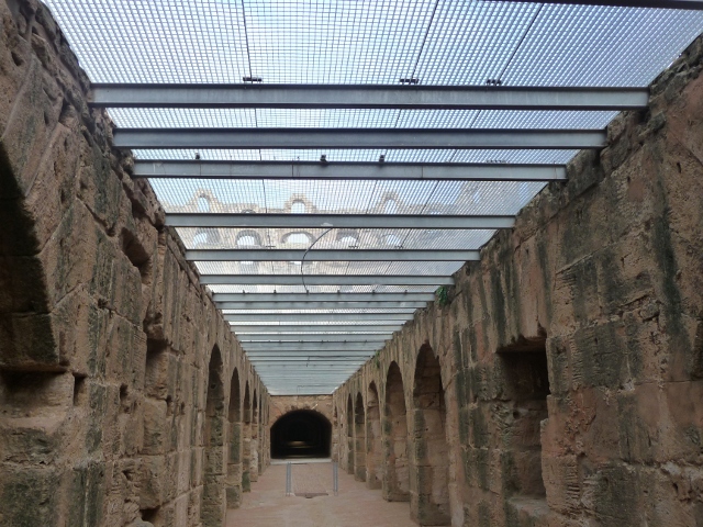 After you’ve stared down at the Japanese tour group standing in the middle of the arena itself, you then head back down and into the arena, staring back up at where you’ve just been. Then you find the passageways which lead down under the arena’s surface, with small compartments for the various combatants-to-be to wait to be sent up to glory or doom.