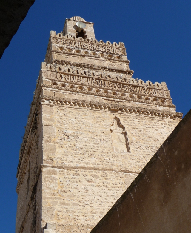 Our third day was forecast for dry sunny weather all day … and it proved to be right for once. We headed south to the city of Sfax on the coast, which is an affluent place, less heavily touristy than some of the towns we’ve visited further north. We admired the city walls, surrounded by palms and explored the souks, with their ancient mosques almost hidden away until you look up.