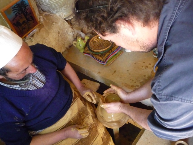 At one end of the island, the small town of Guellala is a centre for pottery, with many pottery workshops and shops to show for it. We stopped in at one, half-buried to provide a more even temperature the year round and prevent the clay drying out prematurely. At one end, the palm-wood fired kiln sat, looking more like a hobbit’s cottage than an oven capable of a thousand degrees centigrade.