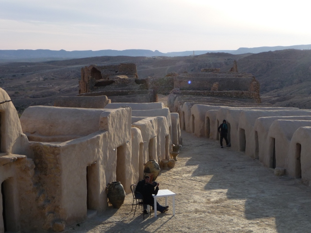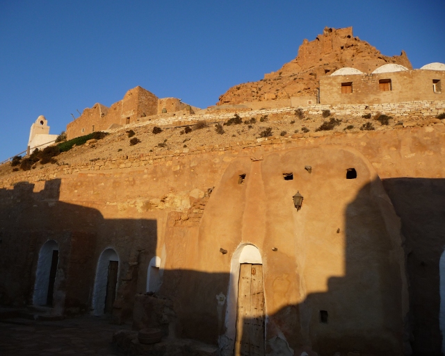 Similarly, as we’ve started to head inland into the deep south, we’ve been coming across plenty of Ksour. A Ksar (Ksour is the plural) is an old fortified grain store, used for many hundreds of years by the Berbers to store their produce in safety. Each family or tribe would have had one or more storage units (Ghorfas) in a Ksar. A guardian would have been responsible for the safety of the Ksar, in return for a small percentage of each harvest as a safe-keeping fee. The Ksour are located in easily defensible positions, and had various defensive measures to help protect against nomadic raiders and thieves.
