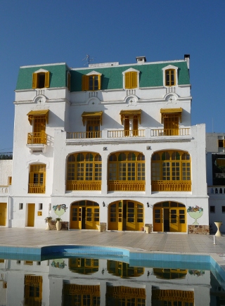If that’s the case, might as well aim totally high, right? One of the hotels, the Dar Mimosa, looked to be a league ahead of the others, in what could easily have passed as a small French chateau on a hill overlooking the town. We wandered into reception with one of those “It doesn’t hurt to ask, but we know the answer already” feelings – only to find that it really wasn’t that expensive at all. Including a three-course meal, a night was no more than we’ve paid for a campsite. And as for the room we were given. Wow. Double doors, straight off the impressive main staircase, leading onto a huge room with a terrace facing the sea and castle. We could have easily got used to sitting on that terrace, as the sinking sun cast a golden glow over the town, with a cold beer in our hands and cashew nuts on the table. Our room, if you look at the pic above, was the left-hand and centre windows on the second floor terrace – yep, half the width of the building…