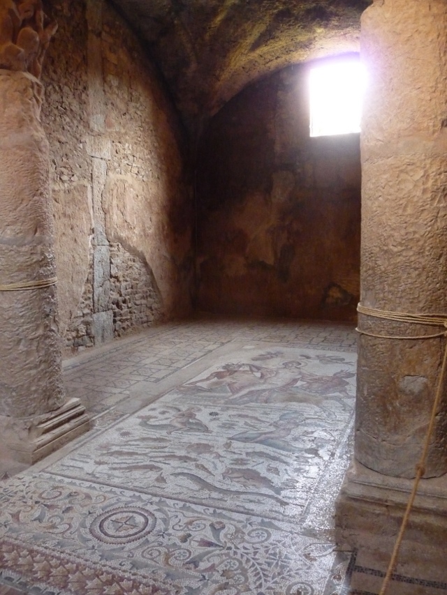 What can I say but WOW! I thought that I had done well with Roman N Africa but these sites are spectacular. Amazing that they have not been destroyed by earthquakes as at leptis Magna or used as a quarry for later building works. The Amphitrite mosaic looks more spectacular than many that i saw. I was told that the figures (very clear in this case) are made of much smaller tessera and would be the work of specialists working in off site workshops whereas the backgound , of larger tessera, would be done on site.