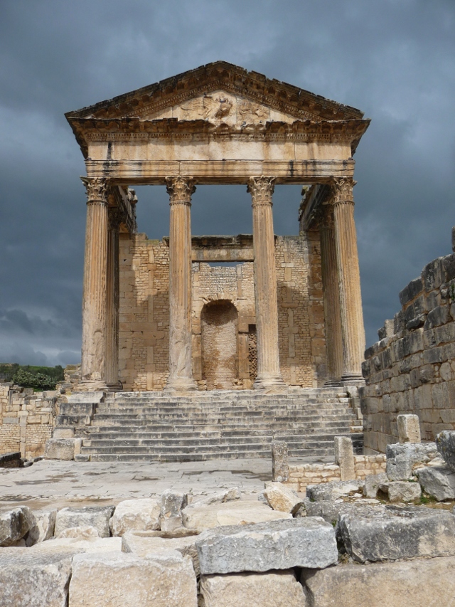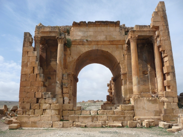 There’s another triumphal arch, in an amazing state of preservation, thanks to the Byzantines. Back in the 6th century, when Tunisia was an outpost of their empire, after the post-Roman Germanics of various descriptions and before the Arabs, they protected several of the main Roman relics by encasing them in thick stone walls. Nobody really seems to know why, but it was definitely a good thing to do.