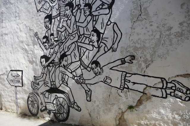 Every city, town and village lined with bare tiled cafés where men chew the fat of a seemingly endless coffee break. It’s always time to go to and from school, the hordes of children and young people stream along the roads of every town. Louages speed dangerously picking up passengers as they fly, sometimes so crowded that peoples’ heads are forced out thruogh the windows.