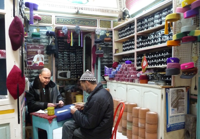 The poignant red chechia’d old men, strolling along, their dignity palpable. A quiet card-playing time in the hat makers’ shop.