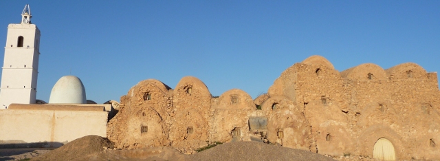 The extraordinary ksour, old communal grain stores, their rounded comforting shapes the same for centuries, the mysterious symbols in their plaster from many generations past about to crumble into dust.
