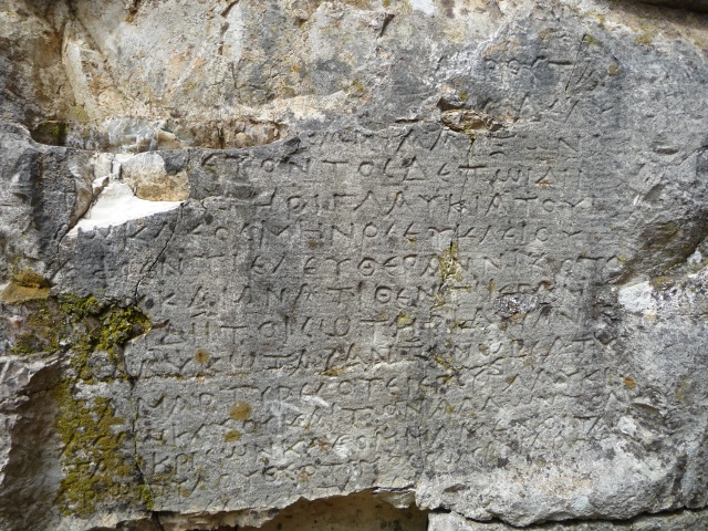 We weren’t going there, though – we’ve seen a lot of the mainland and Peloponnese, and wanted to focus on places new to us – so we curled round the far side of the lake. A couple of small diversions took us to the 11th century church of St Nicholas at Mesopotam (totally unrelated to Mesopotamia…), a squat domed building with many of the stones reused from earlier structures, some featuring crisply carved creatures, real or mythical.