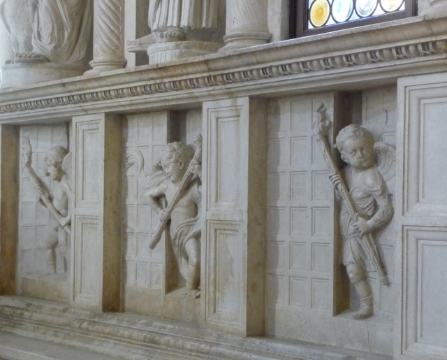 The central square contains a shady colonaded loggia, standing opposite the cathedral – home to some astonishingly lifelike stone carving, especially in one of the side chapels, the walls of which are lined with chubby cherubs peering through half-open doorways.