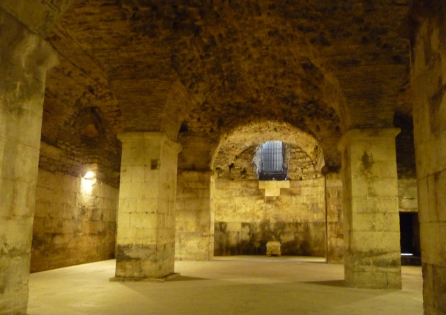 Time for a quick once-around town. Split started off as a retirement home, with a grand total of one resident – Diocletian, Emperor of Rome, and a local-boy-done-good. The palace later became derelict, but the outer walls formed the perfect defences for the fledgling city, and stand tall still. Inside, there’s only a few of the original buildings intact – Diocletian’s Mausoleum, now the Cathedral, and the Temple of Jupiter, now the Baptistry. The basic layout remains, with many of the streets and the peristyle (main courtyard) still very much part of the current city plan. Underneath where the Palace’s main block would have stood, the basements provide a wonderfully atmospheric guide to the original floorplan. Ignored for many centuries, they’ve only recently been unearthed and cleared, giving the original walls and supporting structures a life of their own.