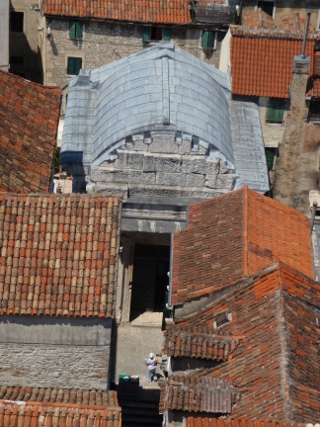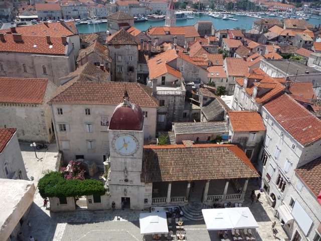 The treasury contained the usual collection of silverwork and old manuscripts, housed in some of the most beautifully carved wooden cupboards we’ve seen. As in Split, a climb up the stairs of the belfry was rewarded with great views over the rooftops.