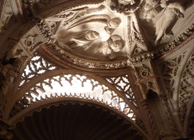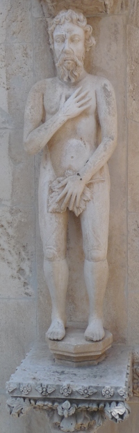 It was about to host its annual children’s festival and stages were being set up around town where performances were to take place. Climbing up the rows of seating enabled us to get a better look at the carvings on the cathedral’s facade, many of them in similar style to the church at Trogir, particularly the Adam and Eve figures.