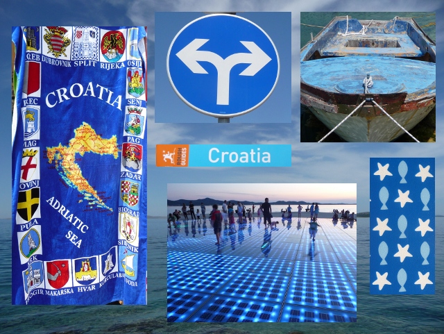 I got more inspired when we reached Zadar (more about this city soon), and saw the Greeting to the Sun installation by Nikola Bašić. This would have fitted the circle theme too – being a circle of flickering lights that becomes a focal point of the city at dusk. Children and adults alike delight in this unique piece. As luck would have it the predominant colour often came up as blue. Finally something a bit more exciting! Since blue is often a backdrop, I placed the images against a sea and skyscape.