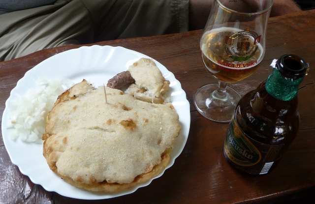 Lunch was čevapi from a back street diner. We have consumed variations of these delicious spicy mince ‘fingers’ throughout the Balkans, but we’d heard they were specially good in Bosnia. They were. In Bosnia they come served in a big bread roll – sometimes fried with a doughy almost pancakey texture, and a heap of chopped onion on the side. Washed down with the tasty Sarajevsko beer … these became a staple during our short Bosnian stay.