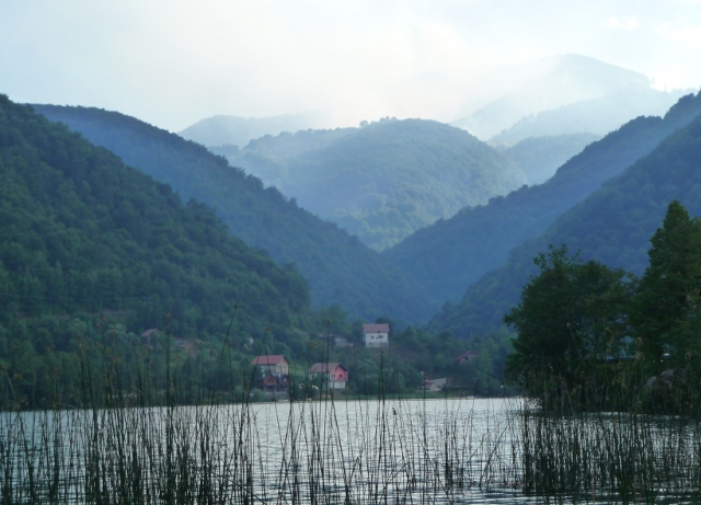 After dinner we got our bikes off to explore the lake and riverside more thoroughly. A hill in the distance appeared to be on fire, but no attention was being paid to it, by anyone. It was still quite busy with cars everywhere by the lake. So many of them had Swedish registration plates, which being half-Swedish myself caught my eye. There were no Swedes at the campsite though. Could they all be Bosnian diaspora?
