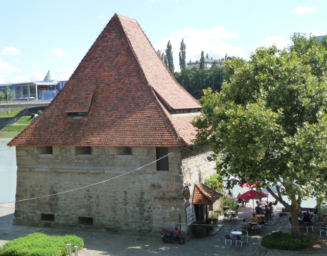 The town itself is Slovenia’s second largest, with the only university outside Ljubljana. That doesn’t exactly make it a great metropolis, though – the population’s only about 90,000. It’s a lovely town to wander through, with some beautiful old buildings, especially in the waterfront area along the banks of the river Drava. At each end of the main waterfront, there’s an old tower, remnants of the original fortifications. One, the Water Tower, now houses a wine bar – a perfect spot to while away part of the afternoon, of course, admiring the architecture and the excellent local white wine known as “Šipon” – legend has it that Napoleon gave it the name, by tasting a glass and exclaiming “C’est si bon!” (It’s so good!), which promptly got re-rendered…
