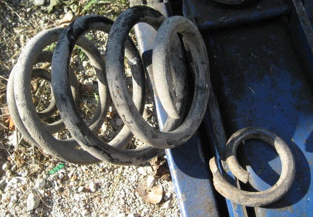 Purely by coincidence, another user of the Club 80-90 forum had a pair of brand-spanking rear springs for sale, despite the proper ones for our Westfalia camper being long unavailable. He’d been sent them in error, looking for different springs for his Syncro 4×4 van. Since he was going to be sending them out to us anyway, we decided to get a few small bits, via a Brickwerks order, sneaked into the same package whilst we were about it. And so, installed in the yard, the van went up on axle stands, the overalls went on, and under I went.
