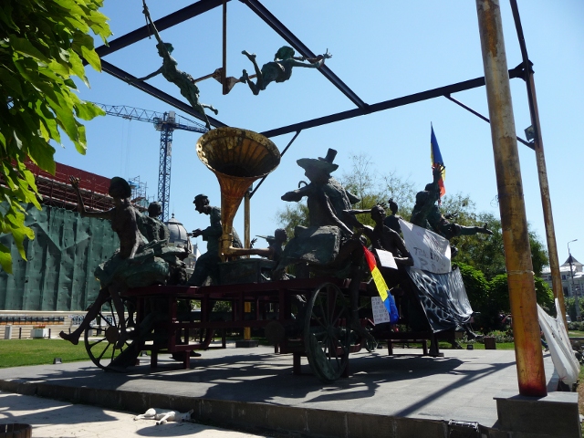 Just a few blocks away, Piața Universitații continues a long tradition of protest. One of the traffic islands bears headstones of those who died protesting against the post-revolution government, basically a Communist party reshuffle (minus a certain leader) with a lick of paint to try to work around the wave of reform which swept the entire eastern bloc. When we were there, the square was occupied by anti-globalisation/EU/US protesters, with banners hung from a large and rather wonderful bronze statue/sculpture/installation of musicians.