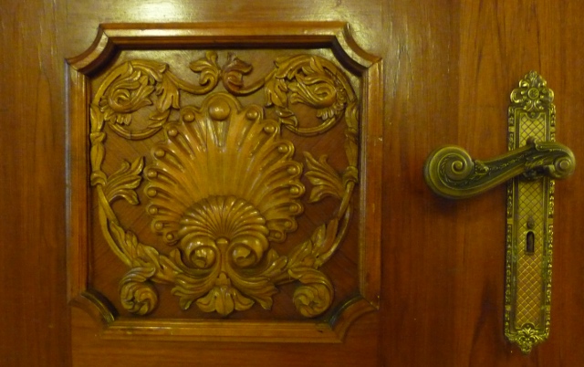 really don’t expect to find in real life. The wood panelling everywhere? Carved by hand, with exquisite inlaid details. Those marble columns? They’re marble-cladding around a concrete or brick core, right, like virtually every other marble column post-Romans? Nope, they’re solid marble. The huge single-sheet mirrors, together with the similarly huge windows in various internal doors? They’re not glass. They’re crystal. The curtains? Hand-woven and embroidered. By nuns. All of them. Just one set, alone, weighs a quarter of a ton. The carpets? Made, of course, specifically for every single room. In a single piece. So why the seams visible today? Ah. That’s because they were too large to actually transport and install, so had to be cut up and re-joined. In one room, the carpet requires seventy people to roll and move it. Unfortunately, that’s the ballroom – the only room where the carpet is required to be moved regularly. Which does seem a shame in a way, since underneath every carpet, every single floor is individually and exquisitely detailed…