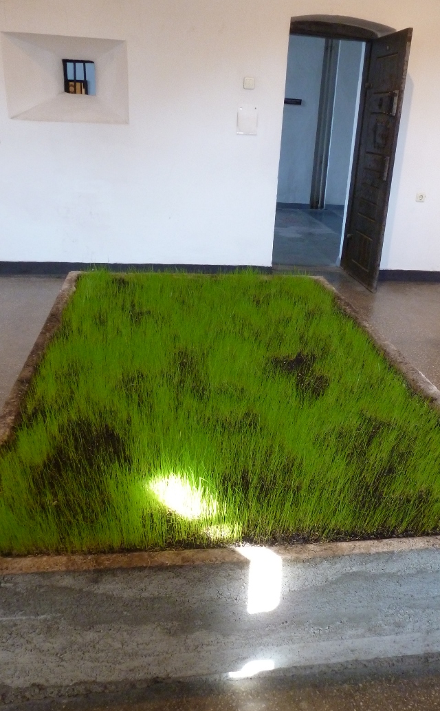 The patch of grass in the centre of the collage isn’t just any random patch of grass but is real fresh growing grass displayed in the Memorial Museum to the Victims of Communism and the Resistance [to Communism] in the former political prison at Sighetu Marmatiei. It is in the cell telling the story of the repression of the peasants when they tried to resist the introduction of collectivism. It symbolises ‘the land, alive and free and the grave of those who sacrificed themselves for it’. A ray of sunshine shone through the high barred window onto it. The prisoners were denied all but a fleeting glimpse of daylight. More about our visit to this museum coming in a post soon.