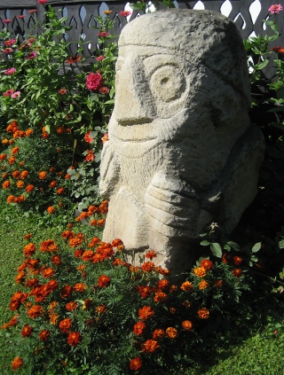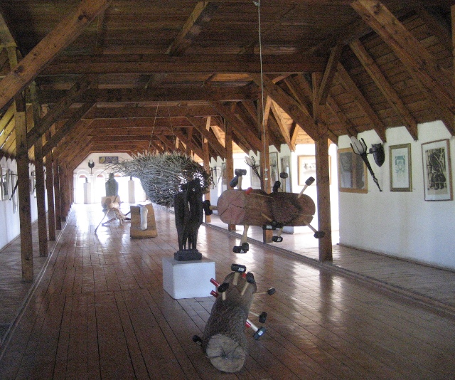 Dating from the sixteenth century, with a few frescoes on its facade, the castle is being gradually restored by a group of artists who come every summer. We entered a large refectory where there is an exhibition of their work, as well as some examples of local ethnographic items.