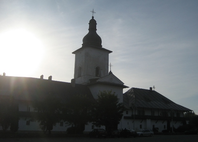 The camping motel showed no signs of life, and it was hard to see how we would have got the van into the overgrown parking area anyway. Onwards, but where? Another motel that supposedly did camping was closed too. Time to start looking for a wild camp spot. There was a sign to the left to Neamt Monastery, one of our ‘to see’ places. We followed the road up there. It is a large complex, and with the oldest buildings dating from the 12th century, it’s the oldest monastery in Moldavia. It’s also the largest men’s monastery in Romania and we went through the high walls to see the church and the grounds around the main building.