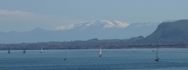 The Madonie mountains are truly beautiful – it was the main peak of the range, Pizzo Carbonara, whose covering of snow we’d seen from the boat as we approached Palermo. Our route from Cefalu through towards Etna took us back through the natural park, rich in spring blossom, then through the neighbouring Nebrodie range, offering stunning views of both Pizzo Carbonara and Etna – sometimes simultaneously.