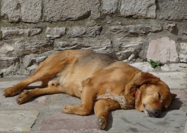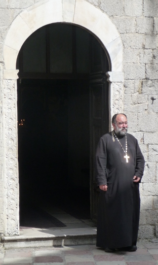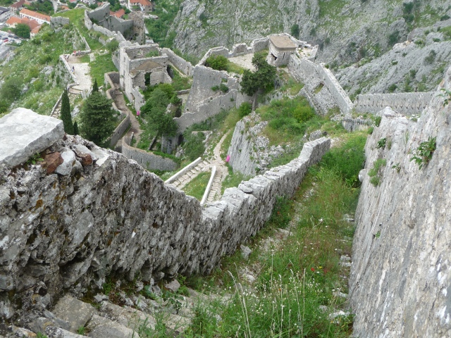 Traffic up to the monastery started early, so we barely lingered past relief o’clock before we followed them up the hill. Ostrog’s Montenegro’s main target for pilgrimages, founded by a seventeenth century monk by the name of Basil. No sooner was it open for business, than he started to get a reputation for miraculous healings. His selflessness in the healing stakes may have been a bit over-enthusiastic, though, as he died only four years after opening for business… Still, it was enough for Basil to become Saint Basil in short order. The monastery itself is in a truly astonishing position – slapped into the middle of what appears to be a sheer cliff face, clearly visible from miles around. As well as that upper monastery, there’s a newer lower monastery – absolutely heaving with people coming to pray for health or give thanks for a recovery. So busy that we took one look and headed straight up the cliff face. There’s a footpath which follows a reasonably straight route, crossing and re-crossing the roadway as it lurches from hairpin bend to hairpin bend. We might not be particularly pious ourselves, but it would have felt a bit wrong to drive straight there…